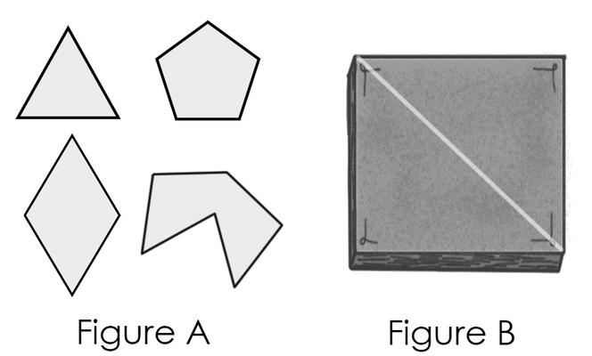 Ils ouvrent la boîte et Ludwig suggère de couper le gâteau en deux par la diagonale pour faire deux beaux triangles identiques (Figure B). Car c’est là sa manie : tout gâteau doit être partagé en parts de formes et de tailles rigoureusement identiques. Mais Sophus l’arrête. Hors de question : la diagonale du carré est plus grande que ses côtés, ce triangle n’est pas équilatéral !