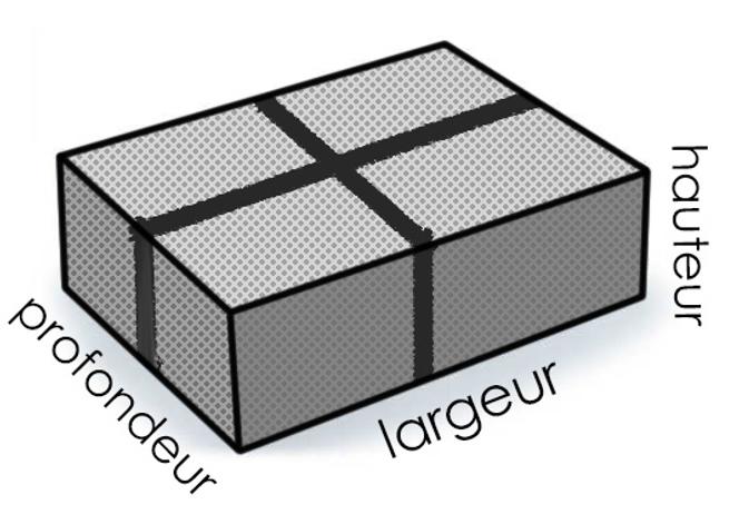 Pour son départ à la retraite, les collègues de la fameuse géomètre Anna Tetraquadro lui ont préparé trois cadeaux et un défi. Les trois cadeaux, l’informent-ils, ont une forme classique de parallélépipède rectangle, avec une largeur, une profondeur et une hauteur (comme indiqué sur la figure ci-dessous). Les trois sont de tailles différentes, mais leurs dimensions n’ont pas été choisies au hasard : pour chacun d’entre eux, les trois dimensions mesurent un nombre entier de centimètres, et le volume total du cadeau (mesuré en centimètres cubes) est égal à son aire (c’est-à-dire la somme des aires de ses six faces, mesurée en centimètres carrés).
